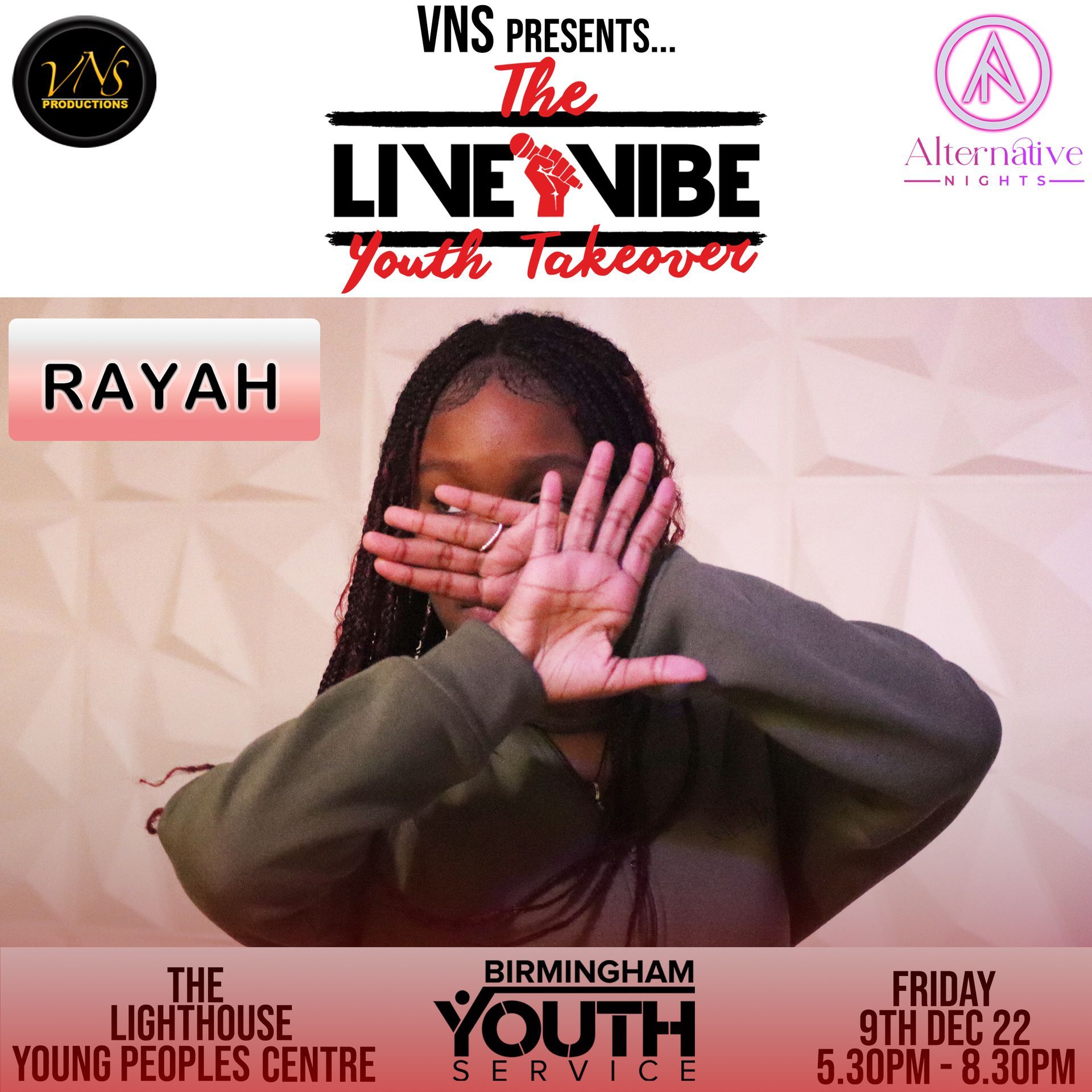 VNS Productions is the community interest element of the company that provides a multitude of services with one of the main focuses of providing platforms and opportunities for young People, artists and creatives to empower, educate and develop themselves and their careers within the creative entertainment industry.